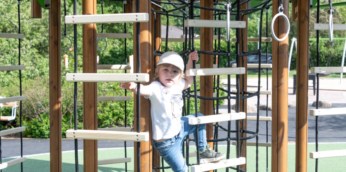 Tayplay partnered with our sister-company HAGS to supply a Cone Climber 3000 & rope ladder for a new playground in Sweden. HAGS, known for designing engaging outdoor spaces, designed and installed the full playspace, including their modular UniPlay system. Tayplay’s rope-based climber added a high-value dynamic climbing and spinning challenge beyond the traditional play-elements. The ladder used existing components developed to pass EN1176 standards.
